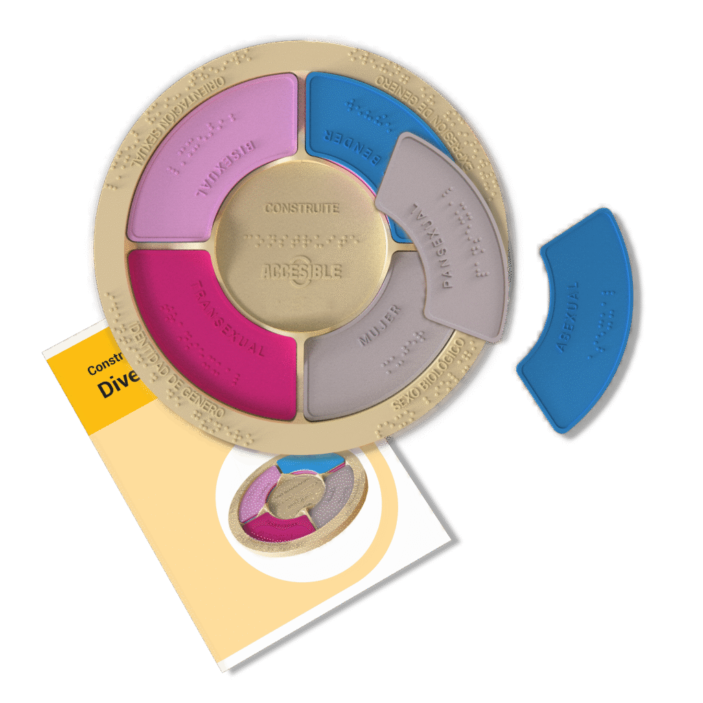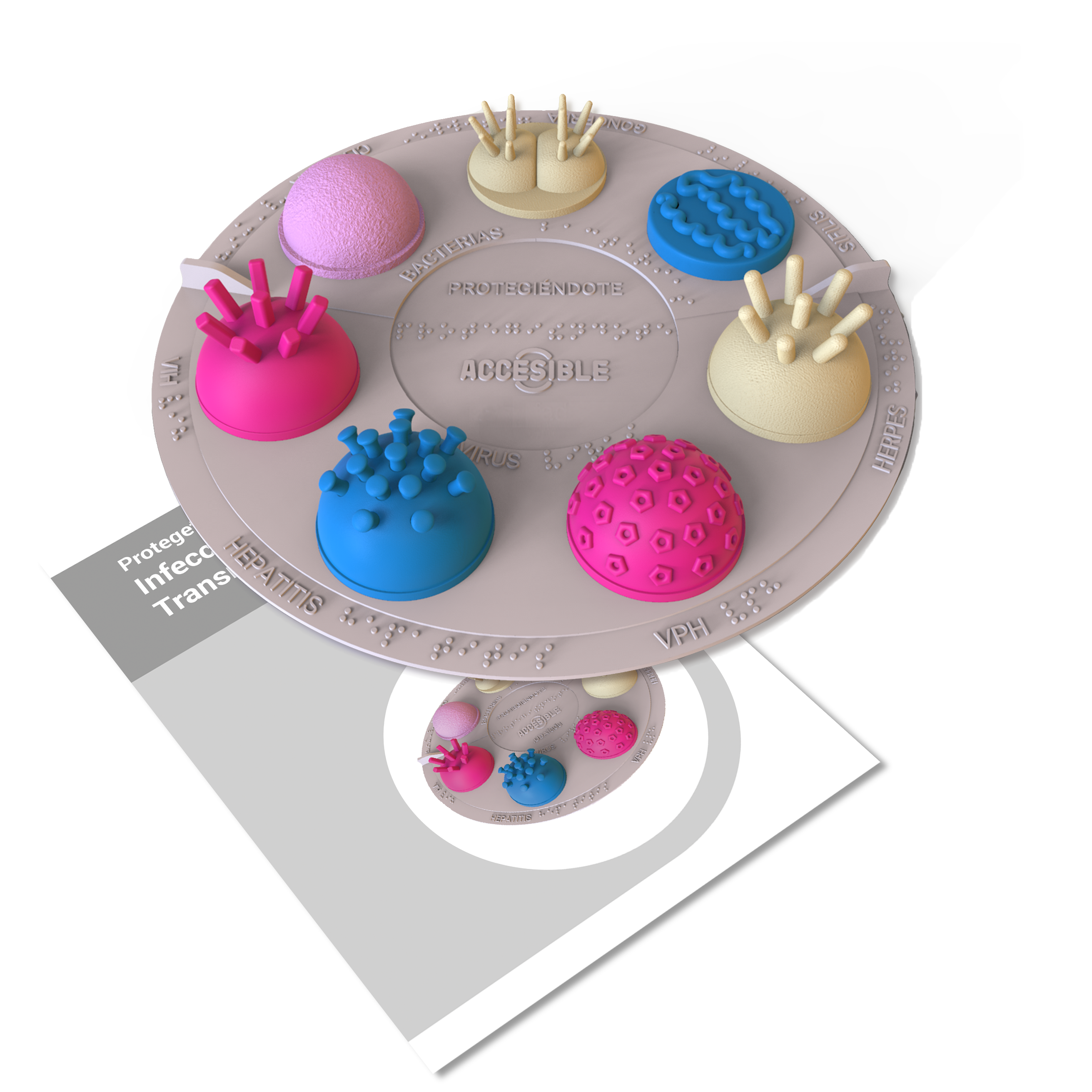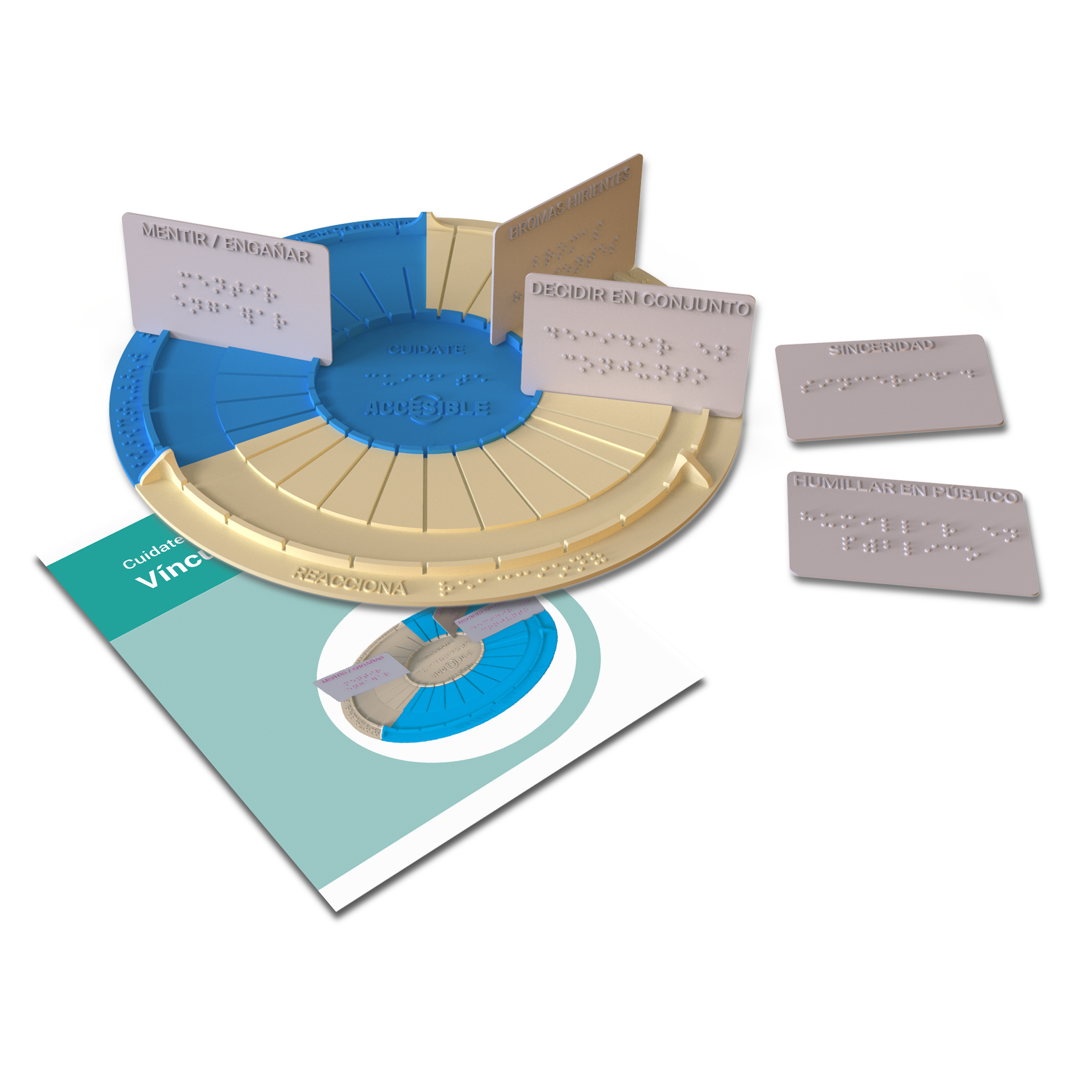 - Piezas gráficas con ilustraciones, esquemas y textos en lenguaje sencillo y en braille.